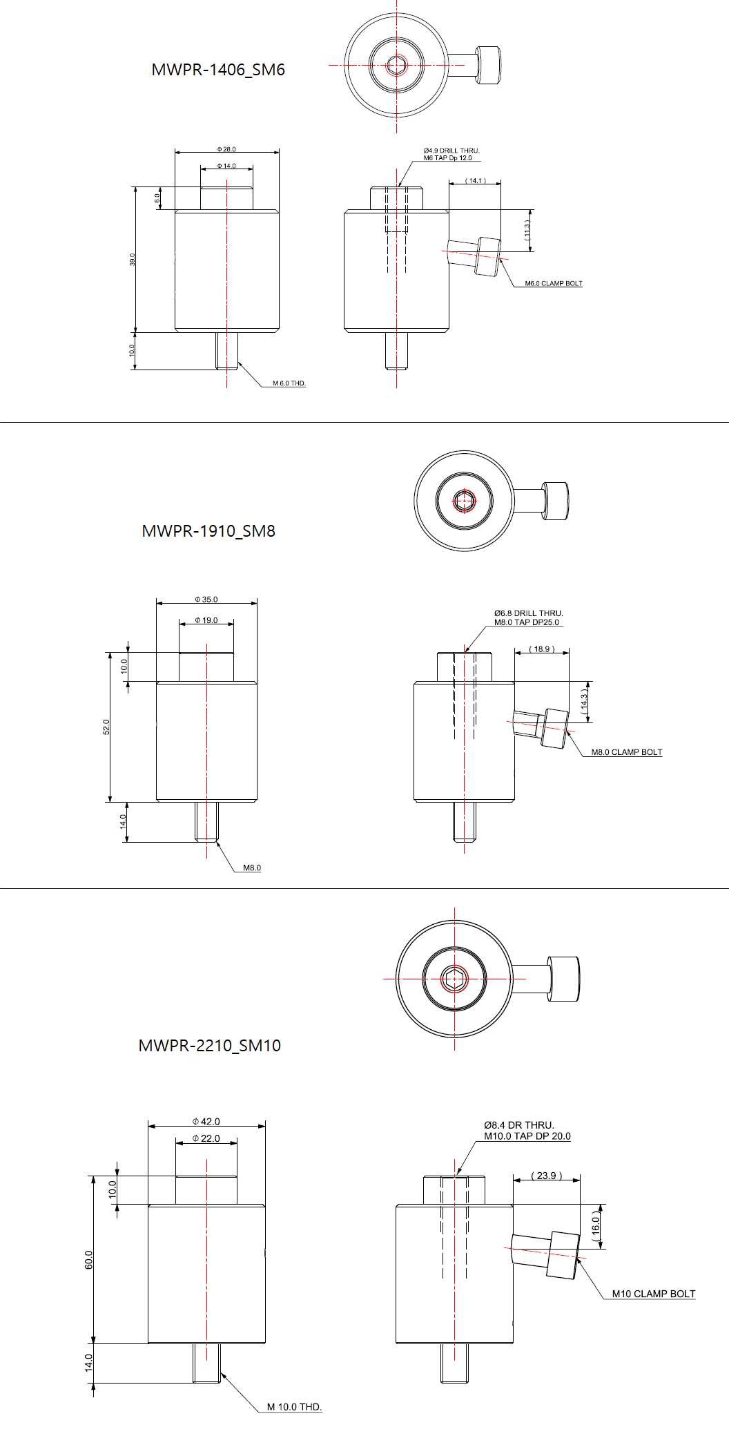 베이스 고정용 볼트: M6/M8/M10