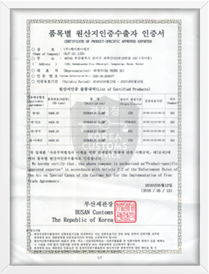 품목별 원산지인증수출자 인증서